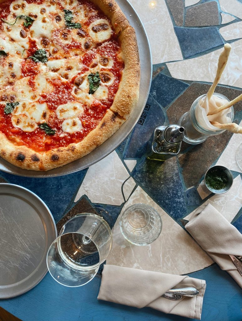 - Hornear la pizza: Transfiere la pizza al horno precalentado y hornea durante 8-10 minutos, o hasta que la masa esté crujiente y la mozzarella derretida y ligeramente dorada.